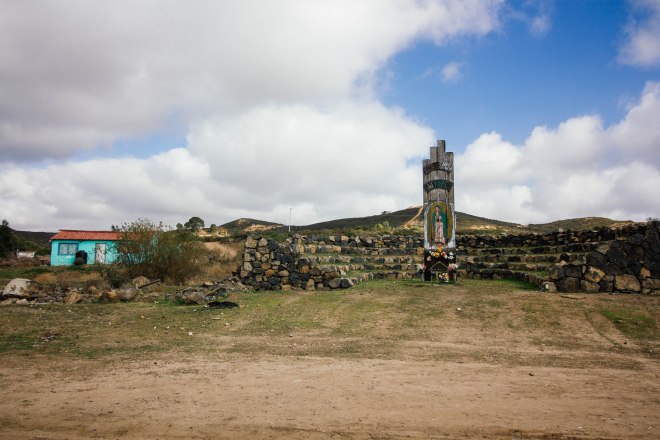 Es muy fácil perdérsela. Está en una pequeña carretera comarcal, al lado de una hacienda derruida. Unas gradas de rocas están siempre pulcramente colocadas alrededor, nadie sabe quién las mantiene tan cuidadas, nunca se ha visto a nadie. Allí, en medio de la nada. Un monumento, un altar para el curioso o el afortunado espontáneo.